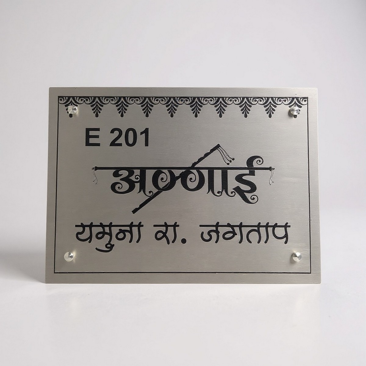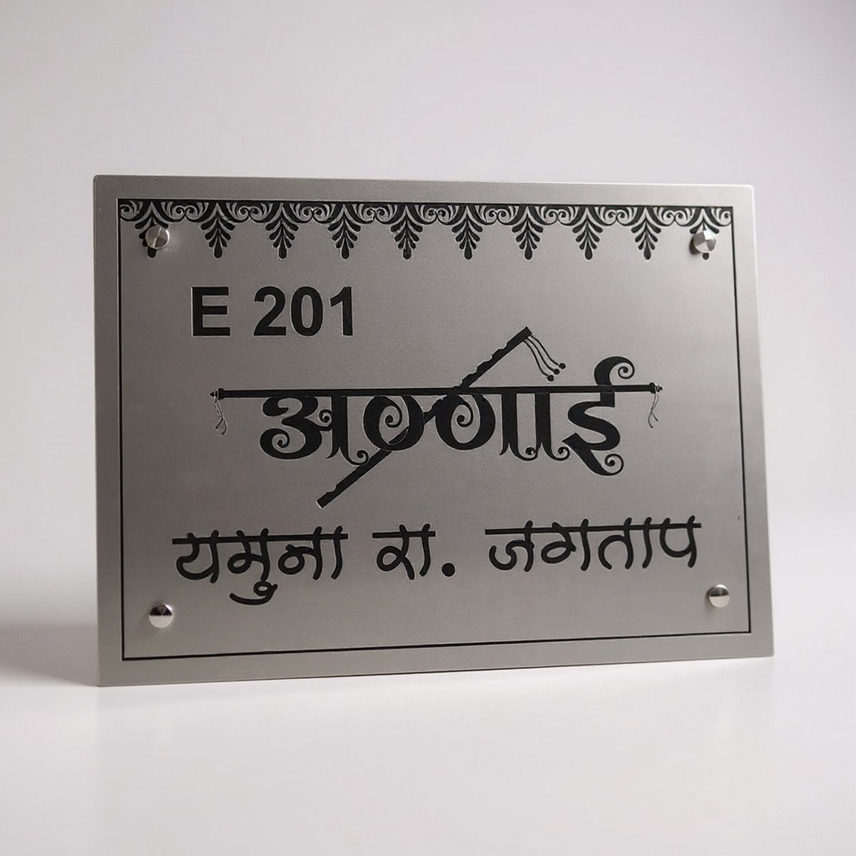 This metal nameplate is ideal for modern homes, traditional houses, apartments, and bungalows. Its strong build ensures long life, while the elegant lettering adds a sophisticated touch to your entrance.