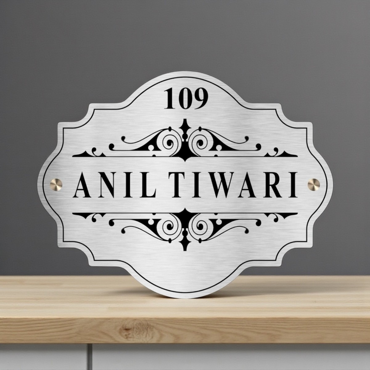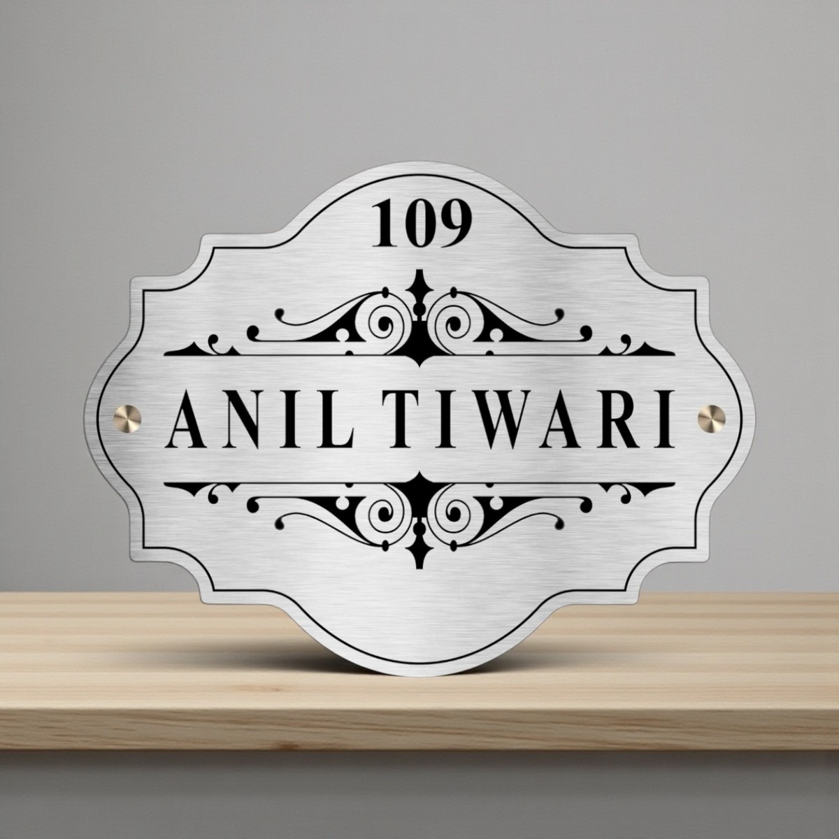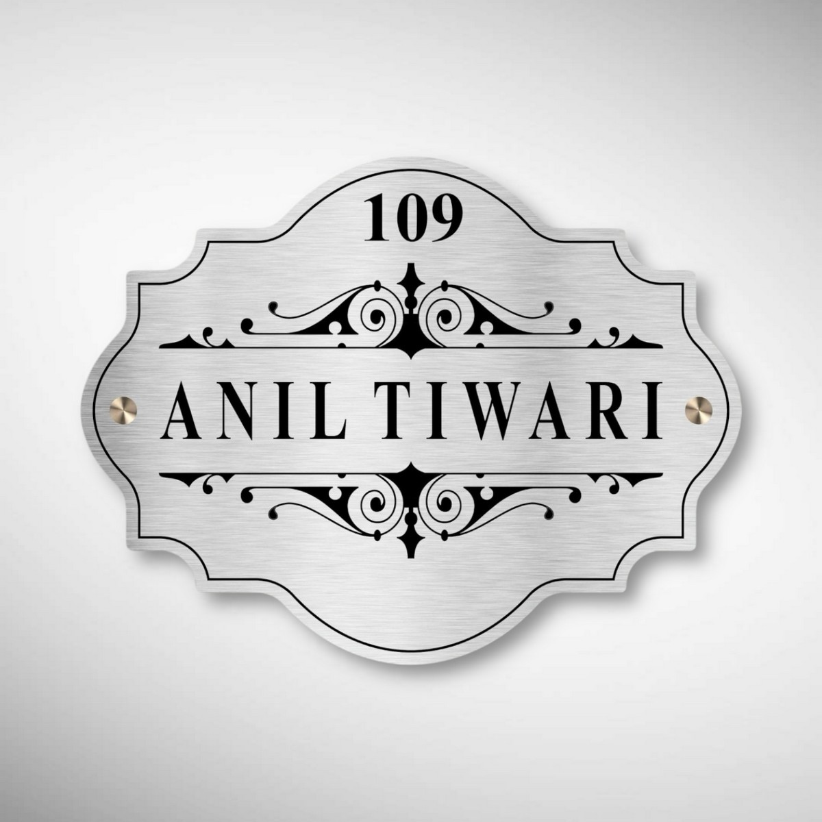 The laser-etched lettering ensures sharp detailing, while the Duco paint coating provides a smooth, polished surface that enhances the overall appearance. Suitable for apartment doors, villas, bungalows, and offices, this nameplate is both practical and visually striking.