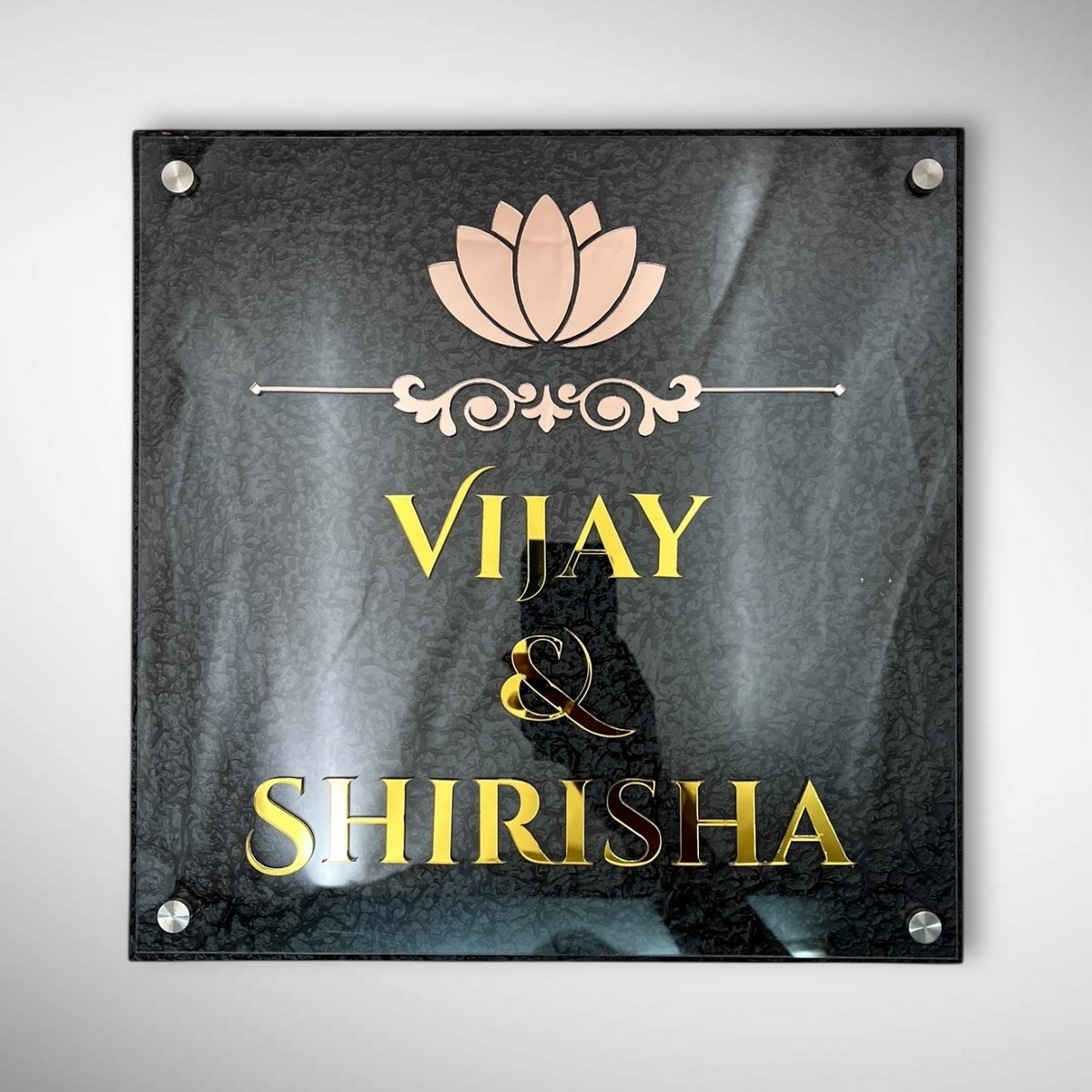 Perfect for Indian households, this nameplate is suitable for indoor and outdoor use and can be personalized with family names, flat numbers, or house names.