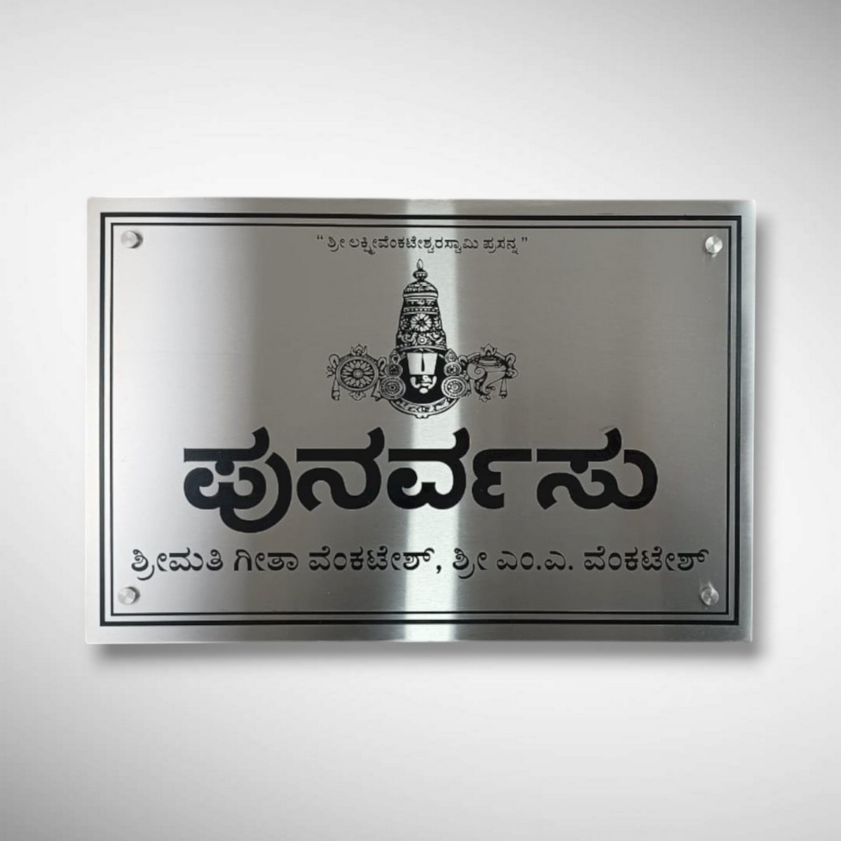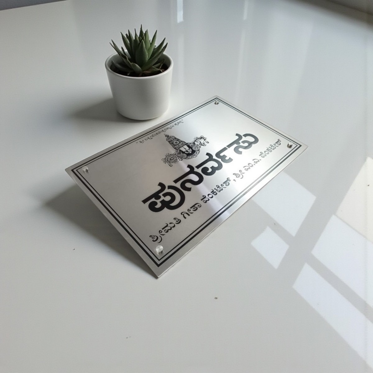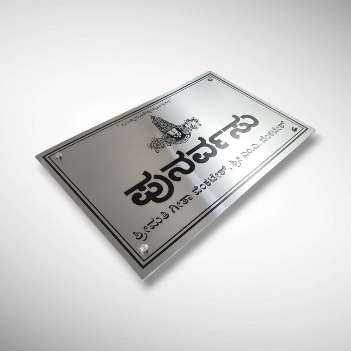 This customized stainless steel Telugu nameplate with Duco paint is the perfect combination of strength, style, and regional pride. Crafted using precision-cut stainless steel letters, it offers excellent durability and a premium finish suitable for both indoor and outdoor use.