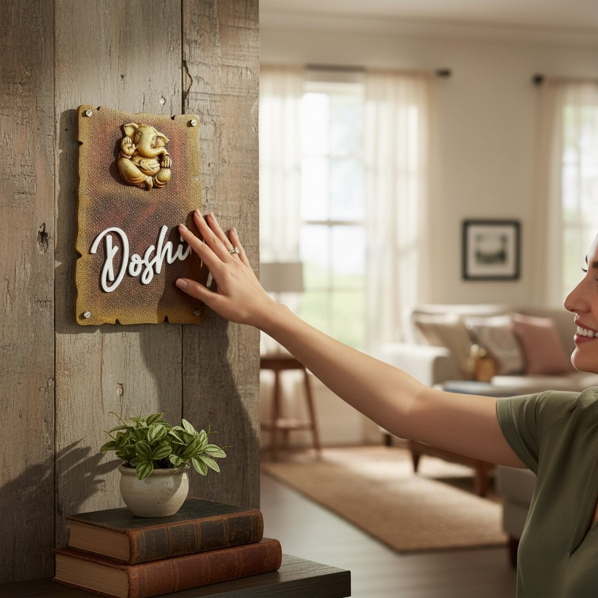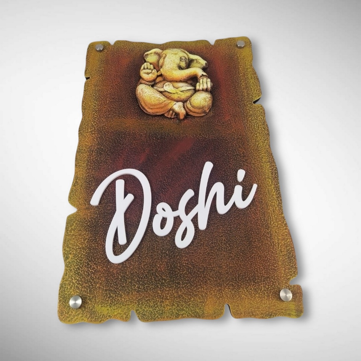 This Ganesh Murti Handcrafted Nameplate is designed to bring spirituality, elegance, and positivity to your home entrance. Featuring a divine Lord Ganesha idol, it is ideal for Indian households that follow vastu and spiritual décor traditions.