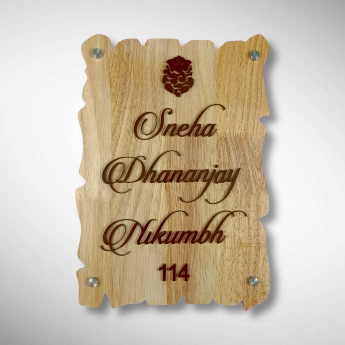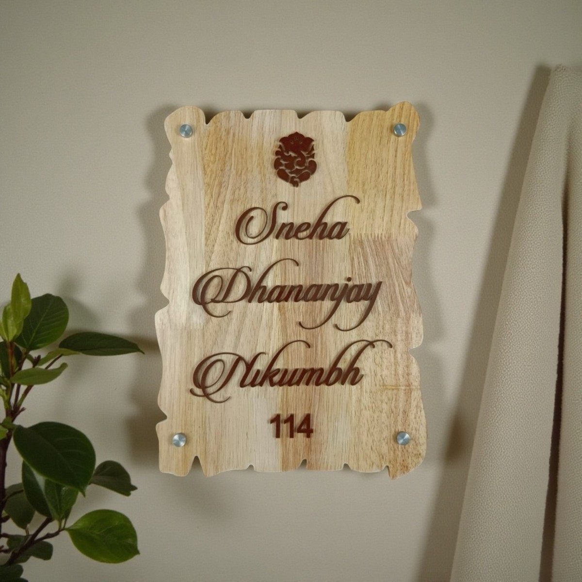 Make your home entrance truly special with our Handcrafted Wooden Stylish Nameplate – Nikhumbh.