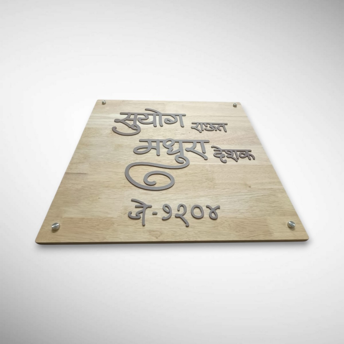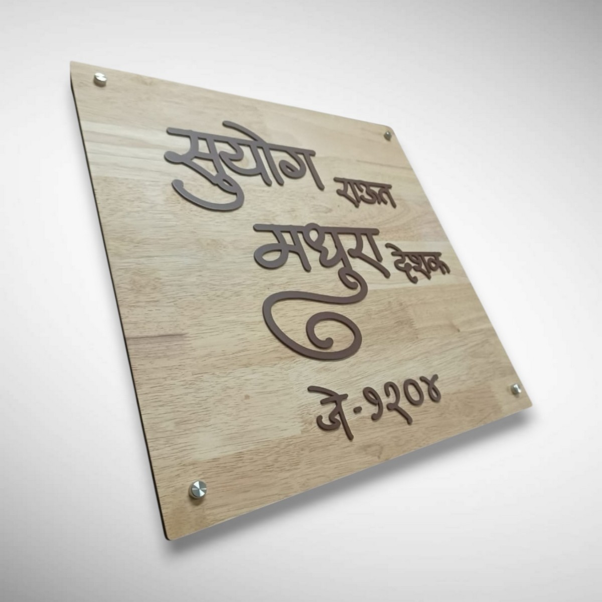 The Suyog Madhura Handcrafted Wooden Stylish Nameplate is a perfect blend of premium wood, fine craftsmanship, and modern design.