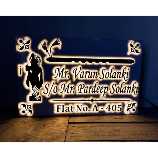 Get your name plate with LED’s that too weatherproof now. This is a Krishan Ji Design led Home Name – Acrylic. Name plate is weatherproof. The plate design is 100% customizable. It will be designed as per the requirements of the customer.