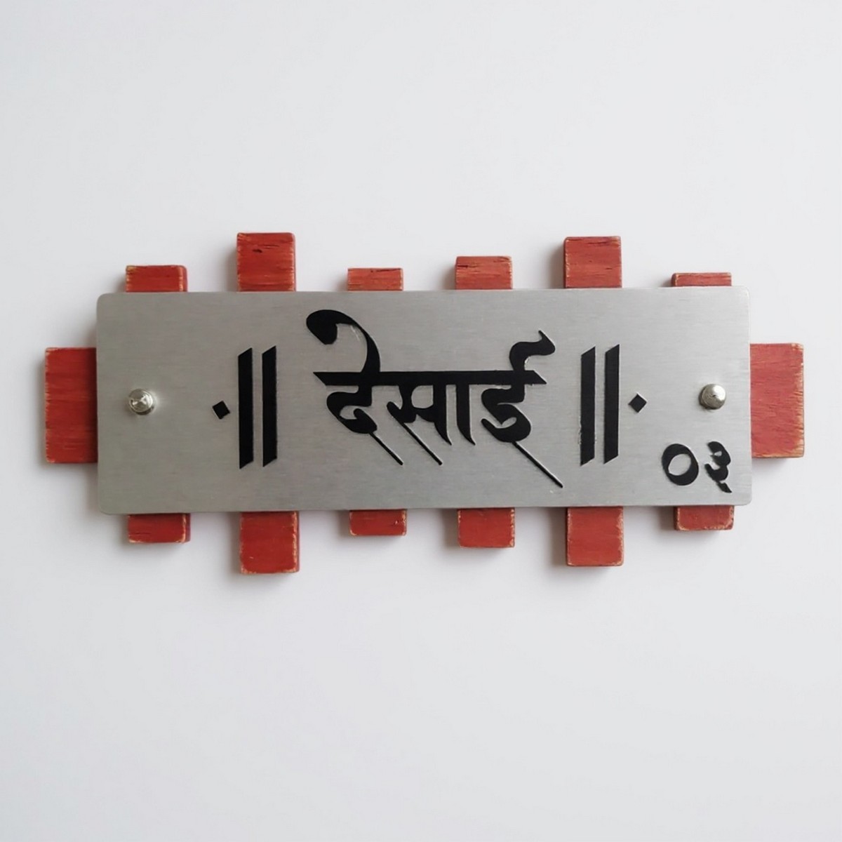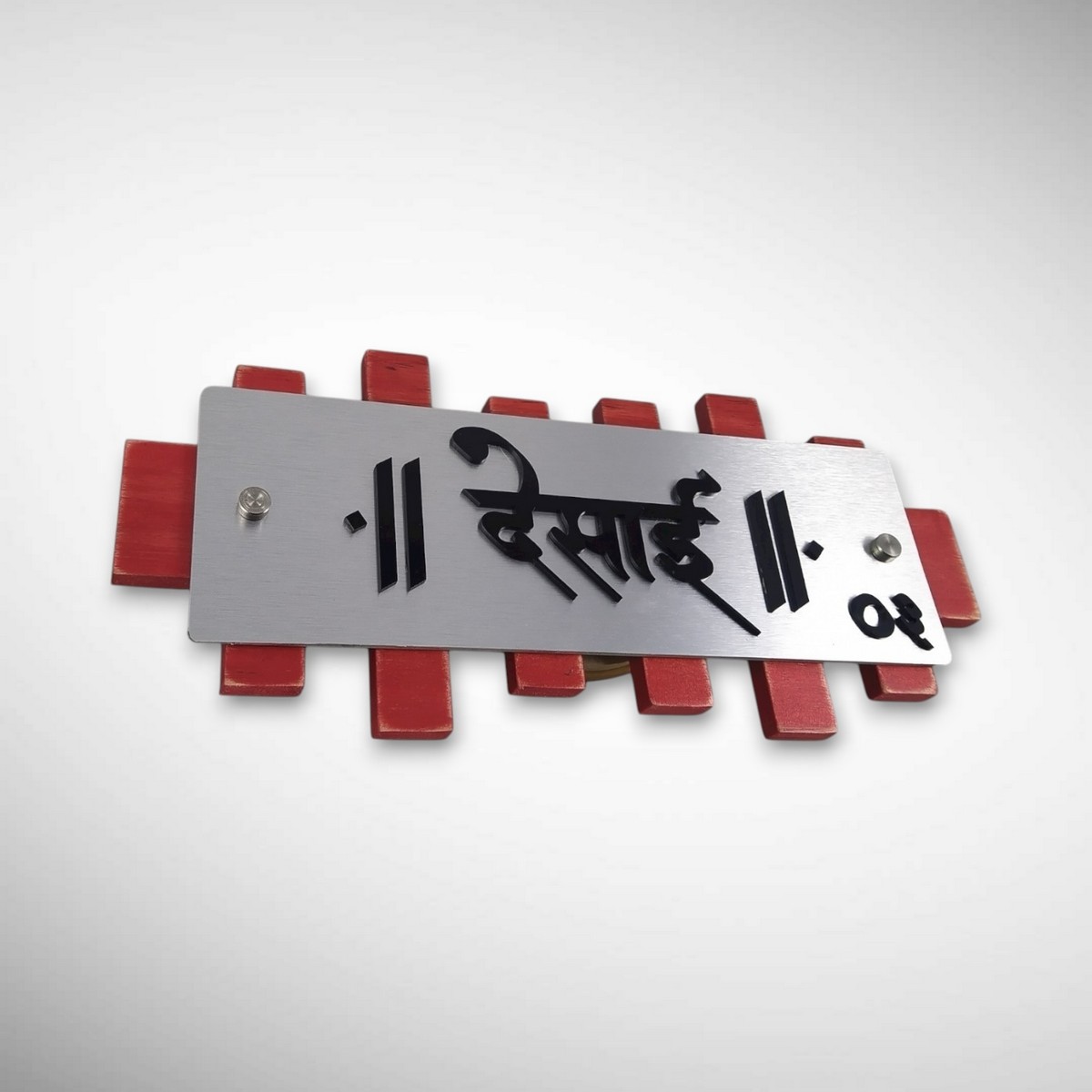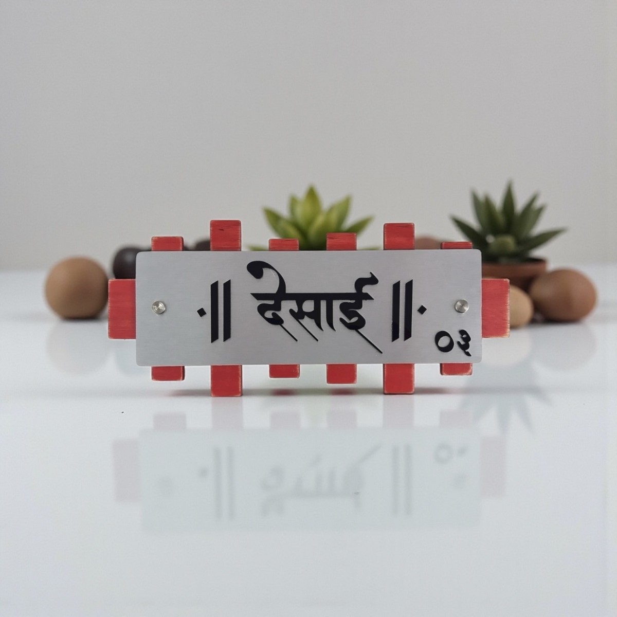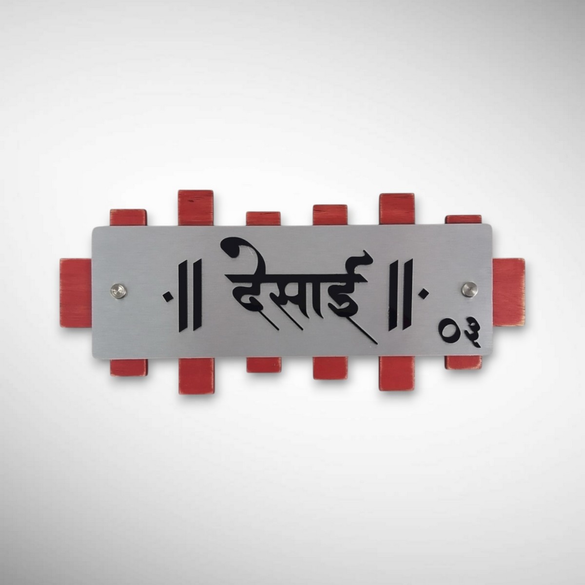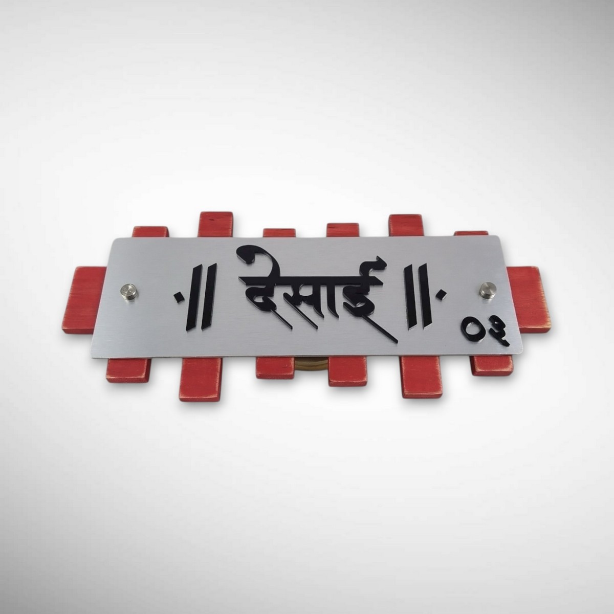 The bold red polish symbolizes prosperity and warmth, while the solid rubber wood ensures durability for long-term use. Personalized with the Desai name, this nameplate brings identity, elegance, and cultural charm to your doorway.