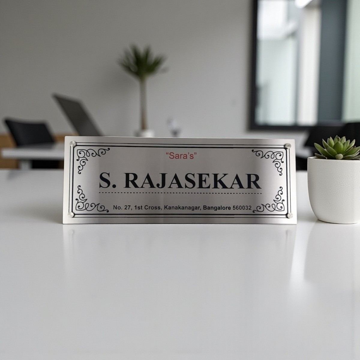 Looking for a durable and stylish house nameplate? This personalized stainless steel nameplate with Duco paint is the perfect solution. Customised with R Shridharan, it combines premium stainless steel strength with a smooth Duco paint finish for superior looks and longevity.