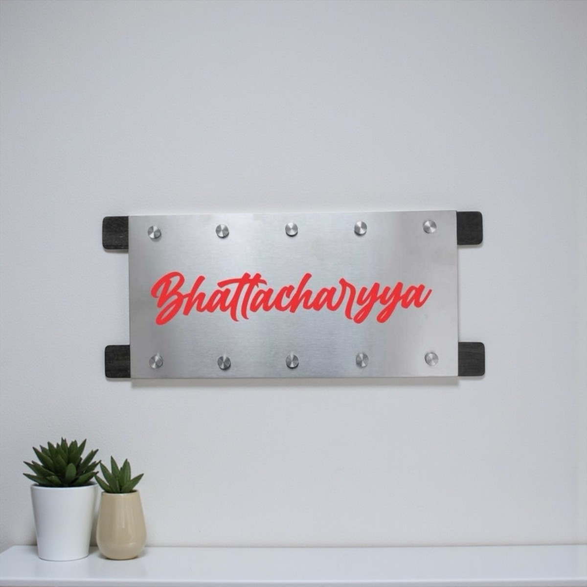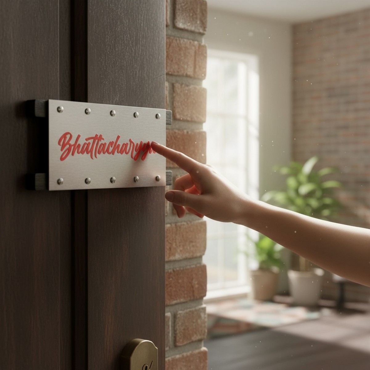 The elegant brushed texture provides a stylish metallic appearance while ensuring clear name visibility. Suitable for apartments, villas, offices, and bungalows, this nameplate adds a professional and premium touch to your entrance.