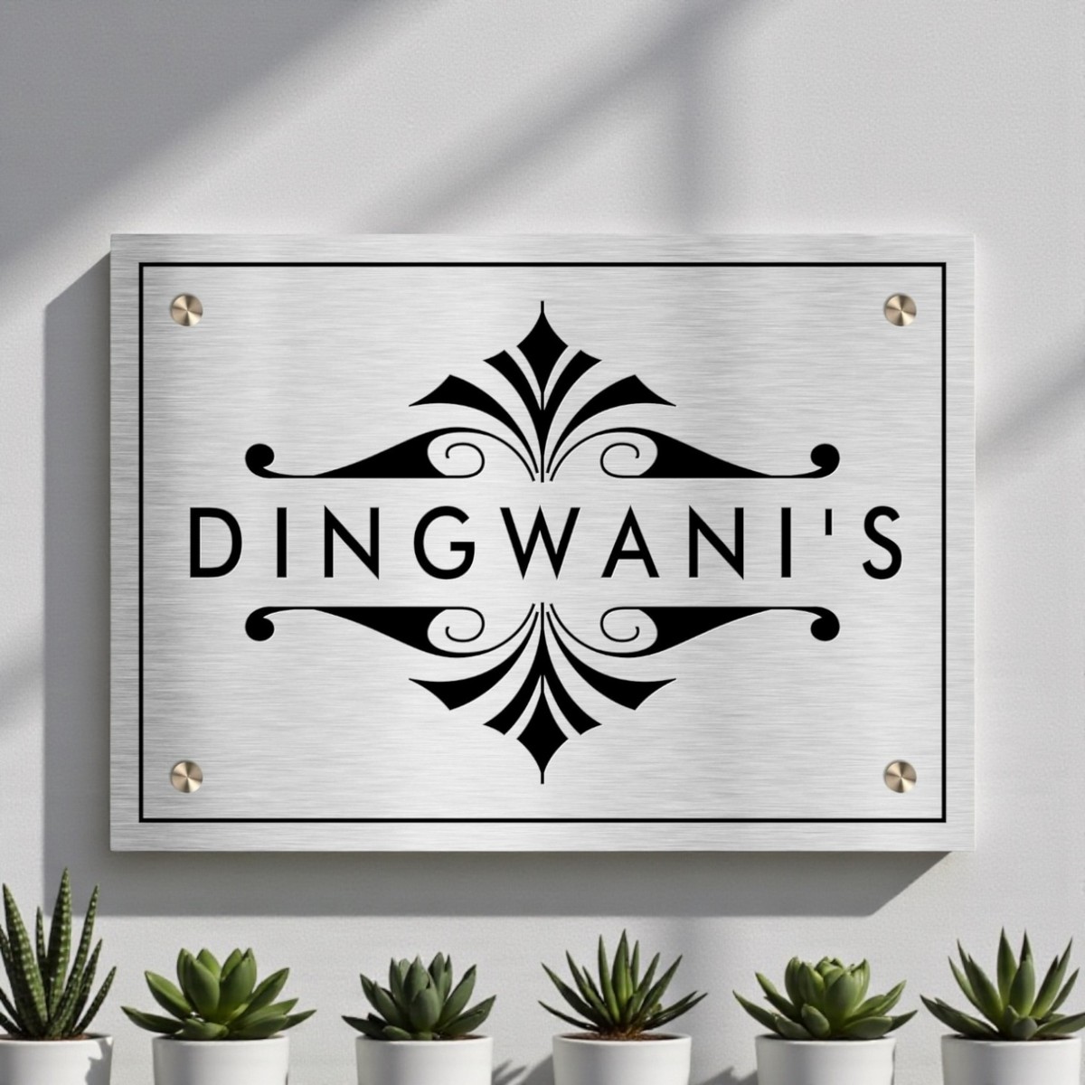 Enhance your home’s first impression with this Premium Customized Stainless Steel Letters Etched Nameplate, exclusively designed for the Dingwanis family. Crafted using advanced etching technology, this nameplate delivers a bold yet refined look that complements modern architecture.