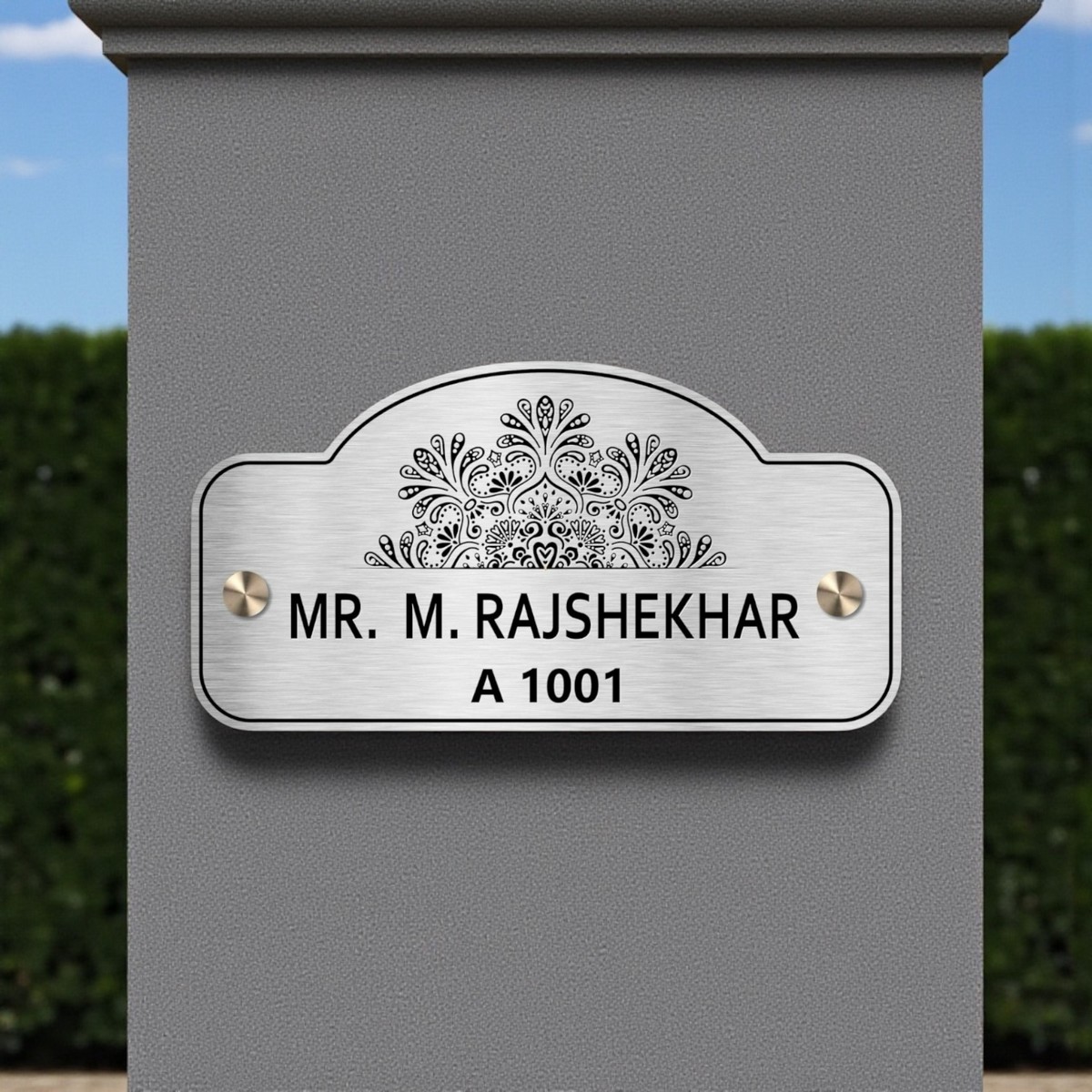 Upgrade your home entrance with this premium stainless steel laser cut nameplate, featuring elegant etched lettering and high-quality Duco paint finish. Designed to offer both durability and visual appeal, this nameplate is ideal for modern homes, offices, and commercial spaces.