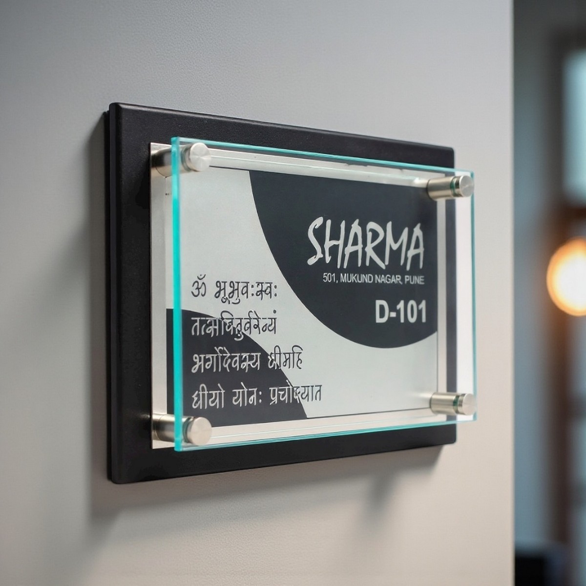 Its minimalist design suits apartments, villas, offices, and commercial spaces. Easy to maintain and visually striking, this nameplate is ideal for both personal use and gifting occasions.