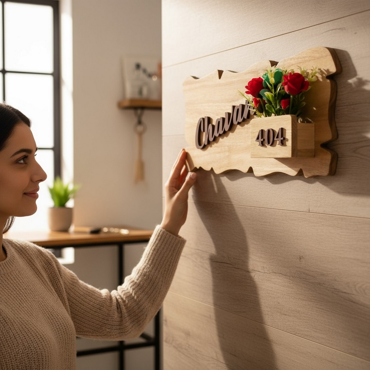 Give your home a warm and elegant identity with our Wooden Floral Planter Nameplate – Chavan. Crafted from high-quality wood and designed with a charming floral planter theme, this nameplate blends nature-inspired beauty with personalised sophistication.