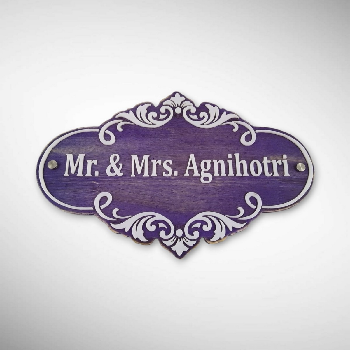 The purple design detail adds a unique and premium look, making it suitable for flats, bungalows, villas, and office spaces. The customized Agnihotri family name ensures a personal and welcoming touch.