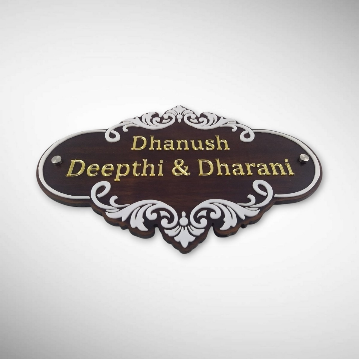 Rubber Wood Brown Polish Nameplate for House – Wooden Name Plate Online