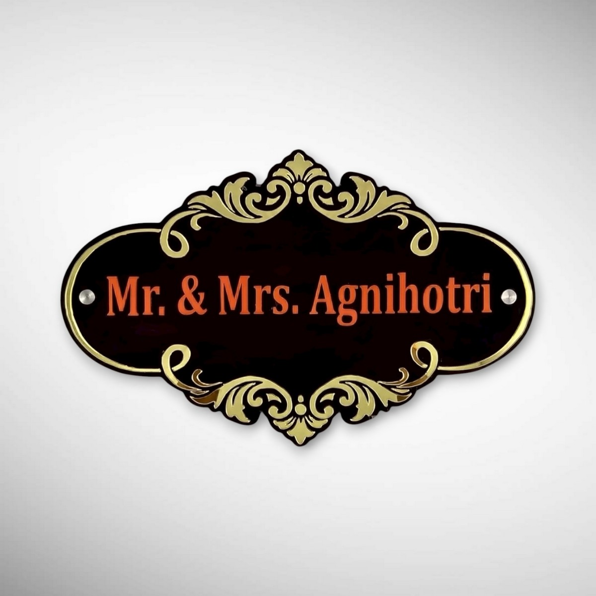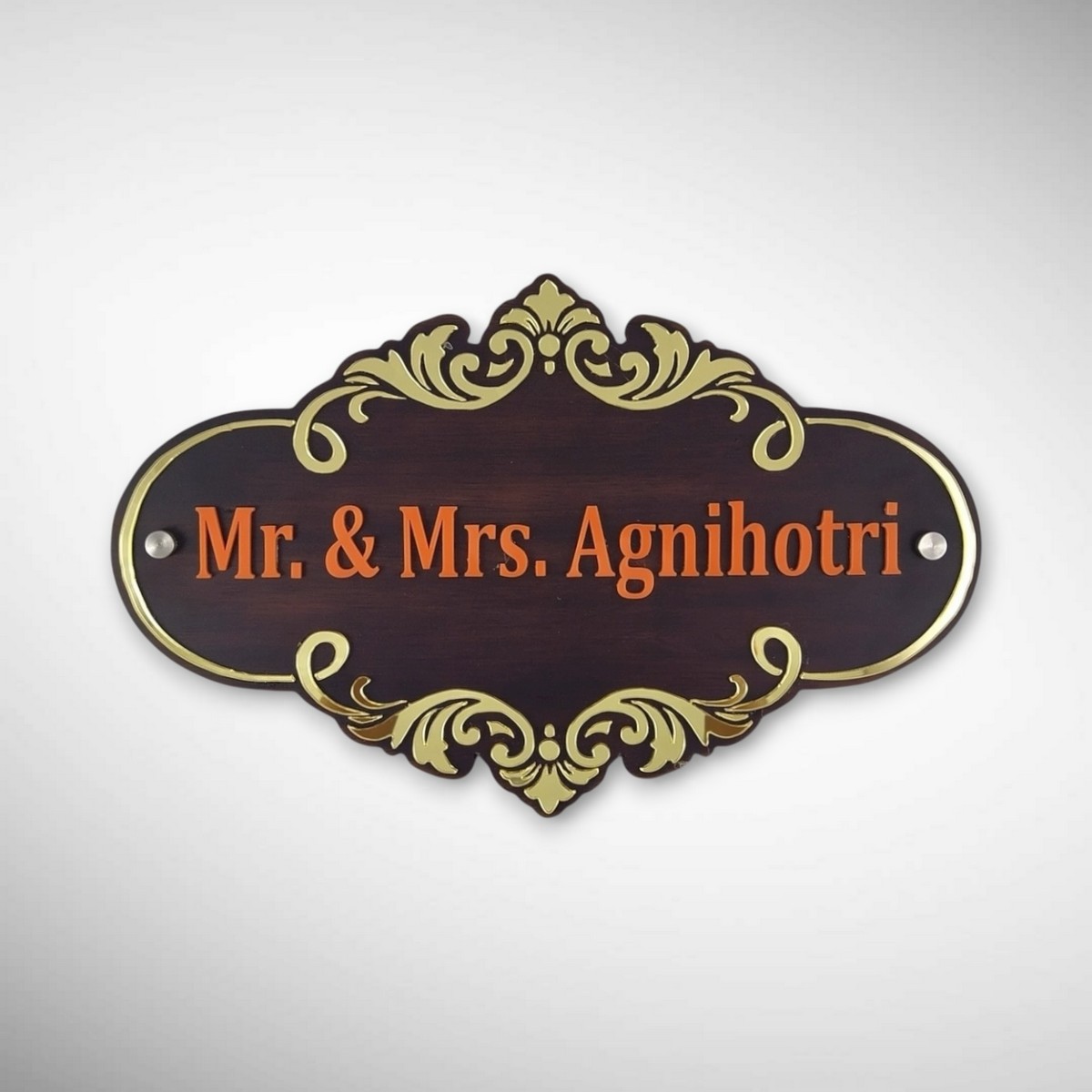 This Rubber Wood Brown Polish Nameplate is crafted with precision and personalized with the Agnihotri family name for a refined entrance look.