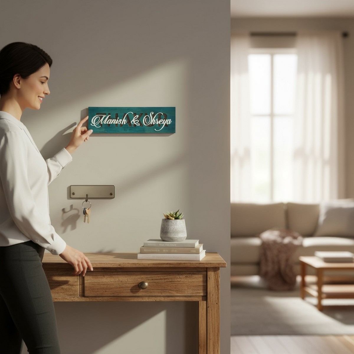 Enhance your home’s first impression with the Rubber Wood Inlay Work Nameplate. Expertly crafted from high-quality rubber wood, this nameplate features detailed inlay designs that make it visually striking and long-lasting. Perfect for personalized home décor or gifting, it brings a touch of sophistication and warmth to any entrance.