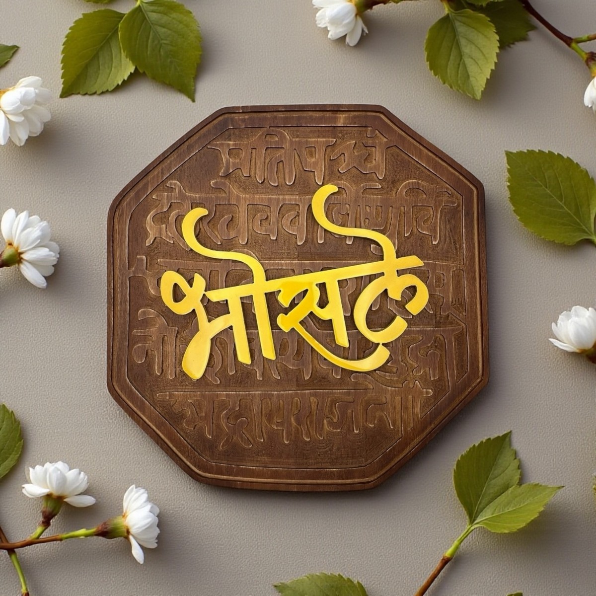 Enhance your home’s identity with this Wooden Carving Rajmudra Nameplate featuring a traditional Bhosale design. Made using high-quality wood, this nameplate is durable, elegant, and culturally rich.